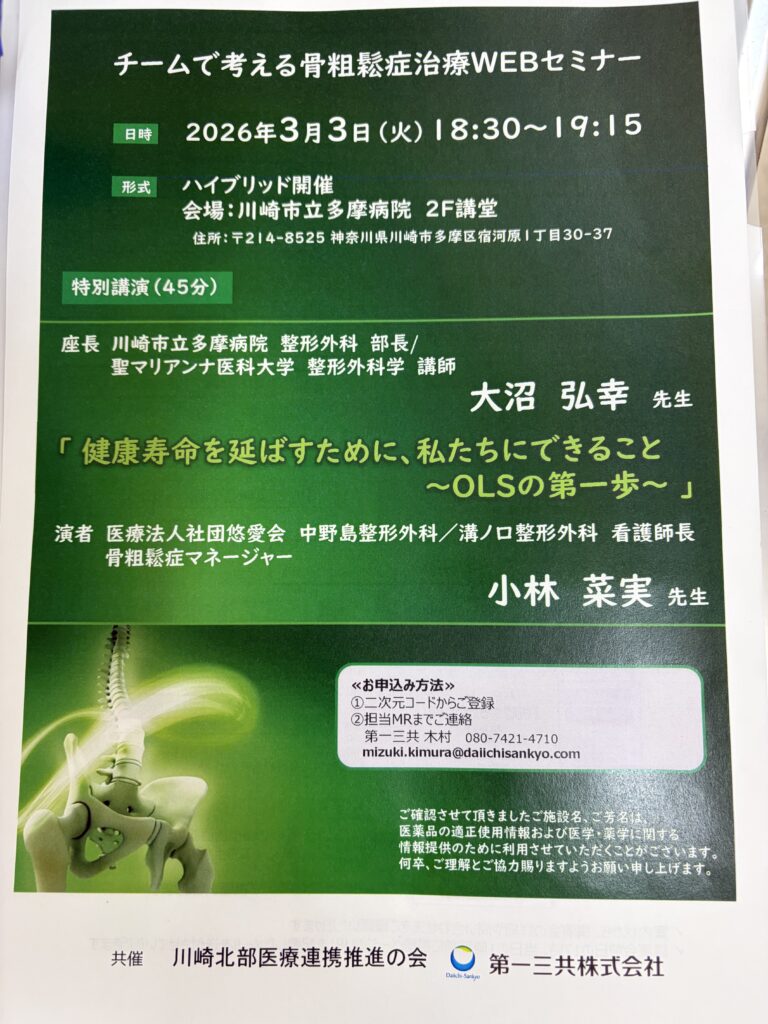 当団体Consultantの小林菜実先生が『チームで考える骨粗鬆治療WEBセミナー』の特別講演演者として登壇されます。(3/3)