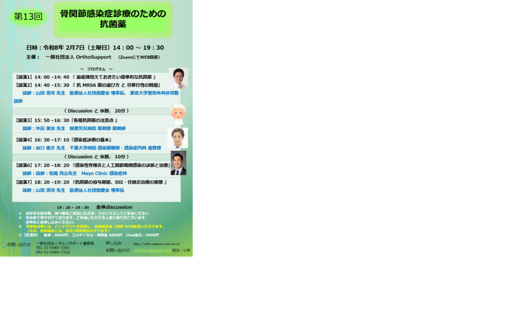 “整形外科領域の感染症診療で必要な抗菌薬” を短期集中で、ゼロから学習します!